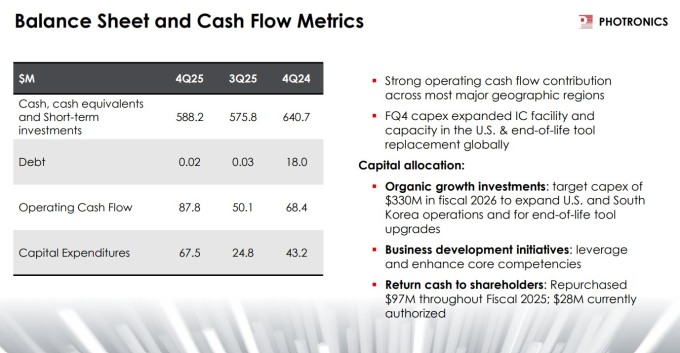 회사는 성장 기회를 포착하기 위한 적극적인 투자도 이어가고 있다. 4분기 설비투자는 6750만 달러에 달했으며, 2026 회계연도에는 약 3억3000만 달러의 설비투자를 계획하고 있다. 이는 과거 수준을 크게 상회하는 규모로, 용량 확장과 기술 발전에 대한 회사의 강력한 의지를 보여준다.