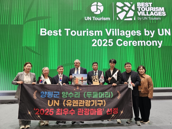 양평군(군수 전진선)은 17일 중국 저장성 후저우시 안지현에서 열린 유엔관광기구(UN Tourism) 최우수 관광마을 시상식에서, 양서면 양수리 두물머리가 ‘2025 최우수 관광마을’로 선정됐다고 밝혔다.