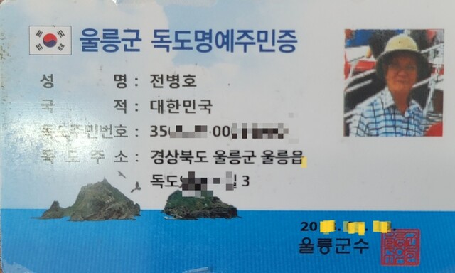 가족 중 가장 먼저 본적을 옮긴 사람은 큰딸이었다. 부친 몰래였다. 나중에 이 사실을 알게 된 그는 큰딸의 훌륭한 뜻을 지지했다. 나아가, 가족 전체의 독도 본적 이전을 독려했다. “독도는 우리 땅입니다”라는 백 마디 말보다 한 명이라도 더 본적을 옮기는 게 나라 위한 길이다 싶어서였다. 독도 명예주민증이 그에겐 그 무엇보다 자랑스럽다.