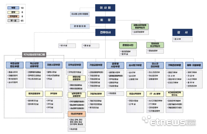 최대 150조원 규모로 국민성장펀드 출범을 앞두고 산업은행이 대대적인 조직개편에 나선다. 국민성장펀드 운용을 전담할 부문을 신규 설치하고, 상위에 전무이사 직속의 국가산업성장지원그룹을 둬 국민성장펀드에 역량을 집중한다. 그룹 내에 혁신성장금융부문과 자본시장부문을 배치해 산업은행의 투자 역량을 집중한다는 방침이다.