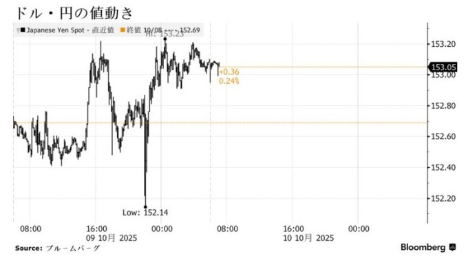 10일 도쿄 외환시장에서도 달러/엔 환율은 한때 1달러=153.30엔 부근까지 떨어지며, 약 8개월 만에 엔화 약세·달러화 강세 수준을 보이고 있다.