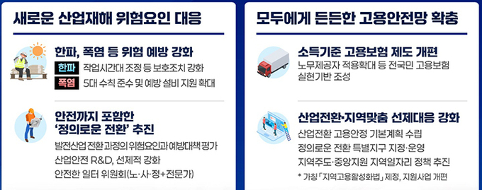 일하는 방식의 변화와 기후변화 등 대응과정에서 위험에 노출되는 노동자의 안전과 건강 보호조치도 마련한다.