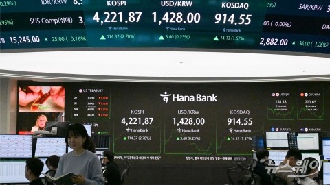이날 코스피는 전장보다 114.37포인트(2.78%) 오른 4221.87에 장마감했다.