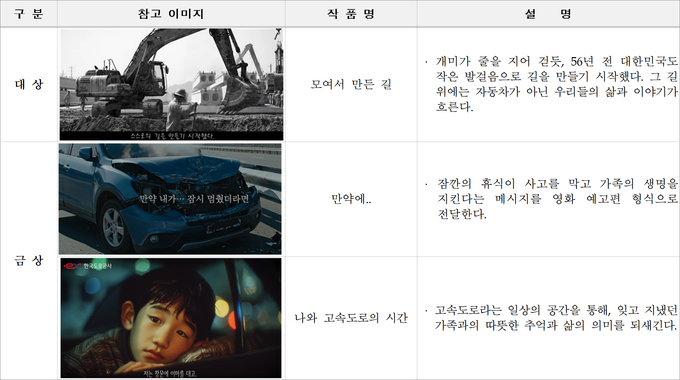 한국도로공사, ‘56초 고속도로 영화 공모전’ 수상작 발표