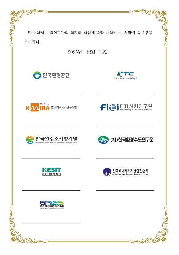 이날 서약식에는 한국환경공단을 비롯해 한국기계전기전자시험연구원, 한국계측기기연구조합, FITI시험연구원 등 총 8개 검사기관관계자 20여 명이 참석했다.