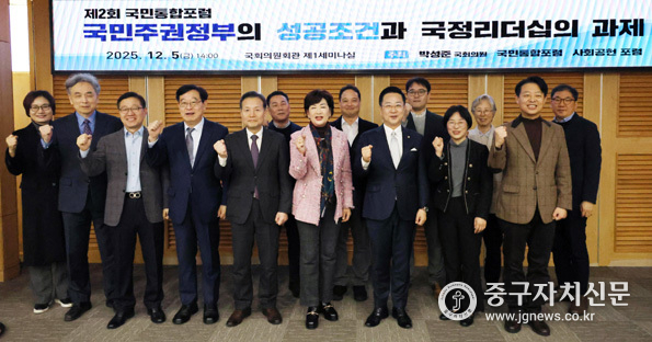 박성준 국회의원(더불어민주당, 서울 중구성동구을)이 주최하고 국민통합포럼과 사회공헌포럼이 공동 주관한 ‘국민주권정부의 성공조건과 국정리더십의 과제’ 토론회가 12월 5일 국회 의원회관 제1세미나실에서 성황리에 개최됐다.