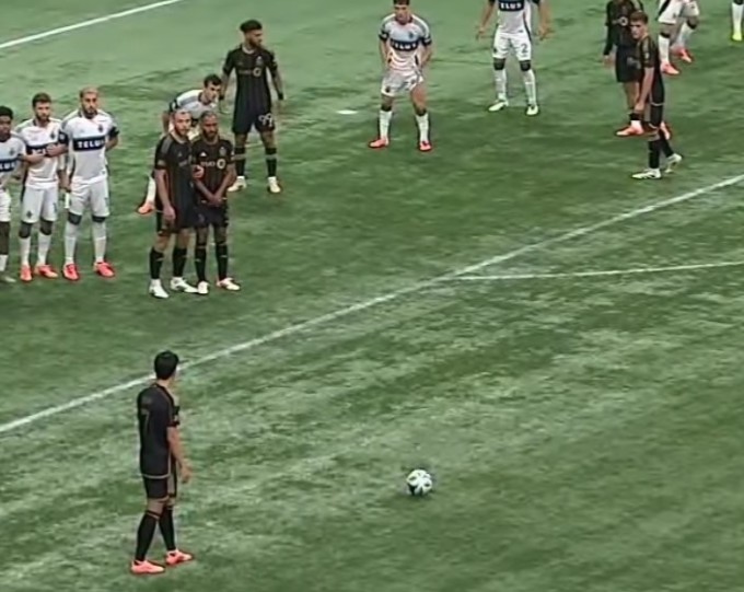 2025년 연출된 손흥민의 명품 프리킥 시리즈의 1탄은 지난 8월 24일 MLS FC 댈러스와 원정경기에서다. 전반 6분 부앙가가 얻어낸 프리킥을 키커로 나서 미국 무대 데뷔골을 터뜨렸다. 당시 압도적인 지지를 얻어 30라운드 '이주의 골' 1위에 올랐고 2025 AT&T MLS 올해의 골에도 뽑혔다. 전체 팬 투표의 43.5%를 얻어 22.5%를 기록한 리오넬 메시(인터 마이애미)를 압도적인 표 차로 제쳤다. 1996년 제정된 MLS 올해의 골 역사에서 아시아 선수는 물론 LAFC 소속 선수가 수상한 것은 손흥민이 처음이다. MLS 사무국은 공식 홈페이지를 통해 "손흥민의 LAFC 데뷔골이 역사에 남을 장면으로 기록됐다"라고 평가했다.