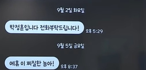 김 의원은 그러면서 자신이 박 의원으로부터 받은 문자를 공개했다. 문자 폭로 직후 야당 의원들은 거세게 항의했다.