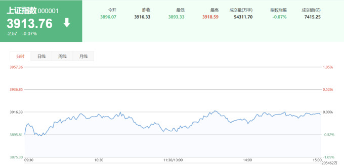 상하이종합지수 3913.76(-2.57, -0.07%)