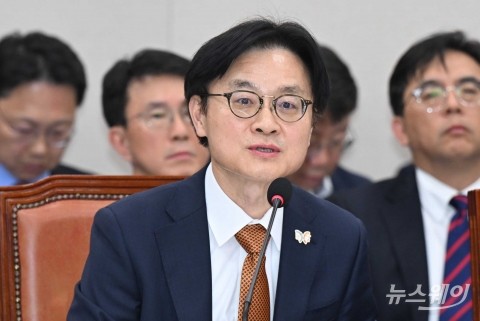 김정관 산업통상부 장관이 24일 오전 서울 여의도 국회 산업통상자원중소벤처기업위원회에서 열린 산업통상부 등에 대한 2025년도 종합 국정감사에서 의원의 질문을 경청하던 중 미소를 짓고 있다.