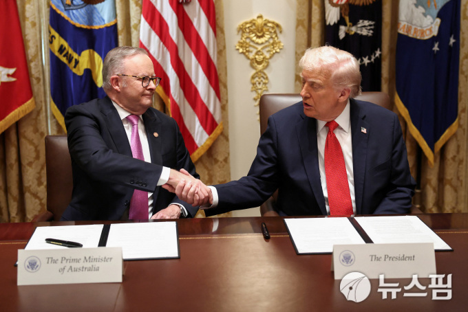 [뉴욕=뉴스핌]김근철 특파원=도널드 트럼프 미국 대통령과 앤서니 앨버니지 호주 총리가 20일(현지 시간) 백악관 정상회담에서 희토류 및 핵심 광물 협정을 체결했다.