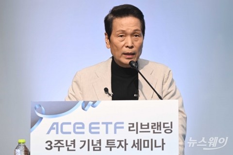 배재규 한국투자신탁운용 대표이사가 24일 오전 서울 여의도 콘래드호텔에서 열린 'ACE ETF 브랜드' 3주년 세미나에서 'AI시대 성공 투자 전략'을 주제로 발표하고 있다.