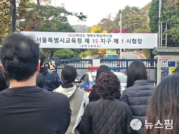 비슷한 시간 서울 경복고등학교 인근에는 4교시 시험 종료를 앞두고 100여명에 가까운 수험생 가족들과 지인들이 모여들었다. 교문이 열리고 수험생들이 나오기 시작하자 가족들과 지인들은 "고생했다"는 말을 전하며 격려해줬다.