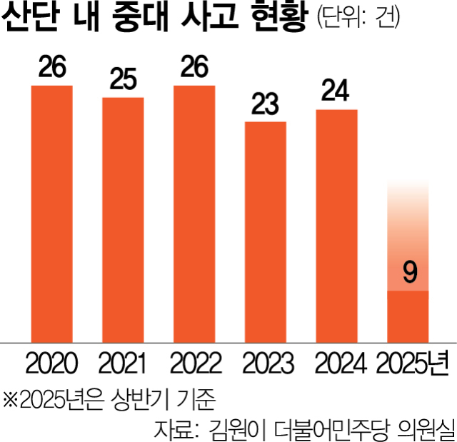 업계에서는 안전 위험 요인이 상존하고 있는 산단에서의 이러한 획기적인 변화를 크게 주목하고 있다. 실제 전국 67개 산단에서 발생하는 중대사고(사망사고, 재산피해 1억 원 이상, 유해화학물질 누출 사고)는 최근 5년 간(2020년~2025년 6월 기준) 총 133건에 이른다. 이로 인한 산단 내 사망자는 110명, 재산피해는 1453억 원에 달한다. 주로 화재, 폭발, 유해화학물질 누출 등이 대부분이다. 김원이 더불어민주당 의원에 따르면 2022년 26건, 2023년 23건, 2024년 24건 등 매년 20건 이상의 중대사고가 꾸준히 발생하고 있다. 특히 산단별 중대사고는 울산미포, 창원, 여수·온산, 포항, 광양 등 대규모 제조·화학물질 취급 산단에 집중하고 있다.