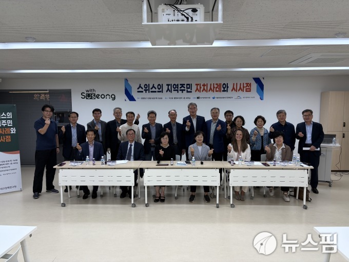 [대구=뉴스핌] 김용락 기자= 대구 수성구는 지방분권운동대구경북본부, 대구정책연구원과 공동 주최한 '스위스의 지역주민 자치사례와 시사점' 토론회가 지난 16일 대구 두산동행정복지센터 회의실에서 열렸다고 17일 밝혔다.