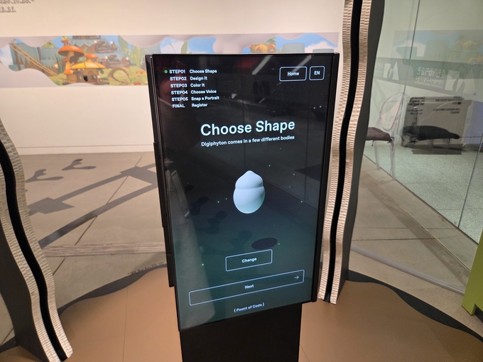 호출된 디지피톤은 바로 옆에 마련된 ‘다마고치 체험존’으로 이동해 관람객과 교감을 나누도록 구성돼 있다.