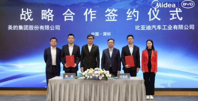 [서울=뉴스핌] 배상희 기자 = 중국 대표 가전 제조업체 메이디그룹(美的集团 000333.SZ)과 중국 대표 전기차 제조사 비야디(比亞迪∙BYD 002594.SZ/1211.HK)가 11월 21일 선전 비야디 글로벌 본사에서 '사람(人)-차(車)-집(家) 스마트 생태계' 협약을 체결했다.