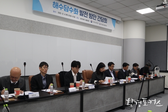 [환경포커스=서울] 기후에너지환경부는 12월 4일 비즈허브서울센터(서울 중구 소재)에서 해수담수화 정책 방향을 논의하기 위한 간담회를 열고, 관련 기업·학계 전문가 의견을 정책 초안에 반영하는 구조를 마련했다고 밝혔다. 간담회에는 김효정 물이용정책국장과 김범직 물산업협력과장을 중심으로, 담수화 장비기업, 조선·플랜트 EPC 관계자, 수소 밸류체인 전문가, 수처리 기술기업, 환경 분야 연구자 등이 참석했다.