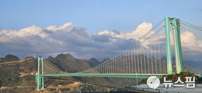 2025년 9월 21일, 중국판 '그랜드캐니언'으로 불리는 구이저우성 안순(安顺) 일대의 화장(花江) 협곡의 화장대교(花江大桥) 위. 현수교 형식으로 건설된 이 다리는 협곡 양쪽 교각 사이의 거리가 무려 1.5km에 육박한다. 그 거리에 수만 톤에 이르는 교량 상판이 쇠줄이 당겨주는 장력만으로 지상 625m 상공에 떠 있는 형국이다.