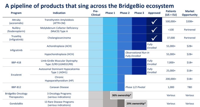 브릿지바이오는 여전히 4분기에 예상되는 상염색체 우성 저칼슘혈증 1형에 대한 칼슘 감지 수용체 길항제인 '엔칼레렛(encaleret)'과 내년 1분기에 예상되는 연골무형성증과 연골연화증을 위한 FGFR1-3 억제제인 '인피그라티닙(infigratinib)'을 포함하여 두 가지 중요한 임상 3상 결과를 앞두고 있다.