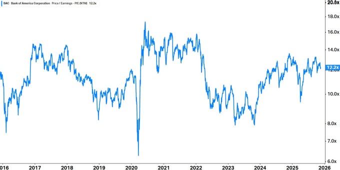 현재 BofA의 밸류에이션은 과거 평균에 가깝다. 코이핀에 따르면 BofA의 주가수익배율(PER<포워드>)는 12.2배로 10년 평균 추정치 11~12배에 근접한다. 대형 은행 중에서는 씨티그룹 10.7배를 제외하고 가장 낮은 축에 속한다.