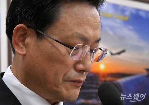 김이배 제주항공 대표가 29일 서울 여의도 국회 국토교통위원회에서 열린 종합국정감사에 출석해 지난해 발생한 12·29 무안국제공항 제주항공 여객기 참사 관련 의원들의 질의에 답하고 있다.