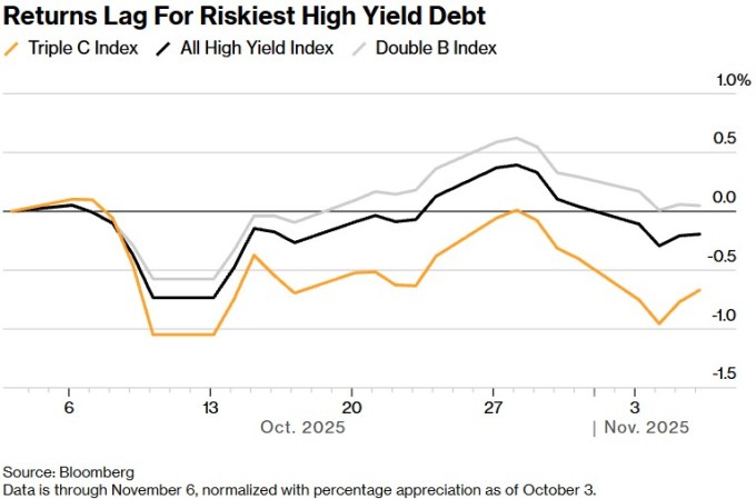 경계론자들이 주시 중인 동향은 최근 회사채 정크시장에서의 변동 징후다. 소위 하이일드채권 중에서도 최하위 등급인 CCC 등급 채권 스프레드가 지난주 6일까지 한 주 동안 27bp나 벌어졌다. 정크본드 시장은 올해 9월 퍼스트브랜즈와 트라이컬러 등의 파산보호 신청 소식에도 강세를 보였던 터였다.