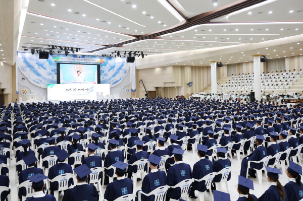 이날 이만희 총회장은 ‘사랑과 축복, 세계를 비추는 빛’이라는 이번 수료식 주제처럼 수료생들에게 “성경대로 믿고 행하는 똑똑한 신앙인이 돼 하나님의 말씀으로 마음과 생각이 새로 창조되는 변화된 삶을 살아가야 한다”고 당부했다.