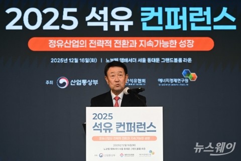 박주선 대한석유협회장이 16일 오후 서울 중구 노보텔 앰배서더에서 열린 2025 석유 컨퍼런스에서 개회사를 하고 있다.